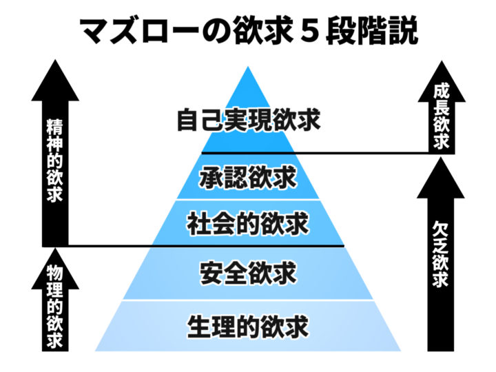 マズローの欲求段階説は、第4段階(承認欲求)までを「欠乏欲求」といいますが、